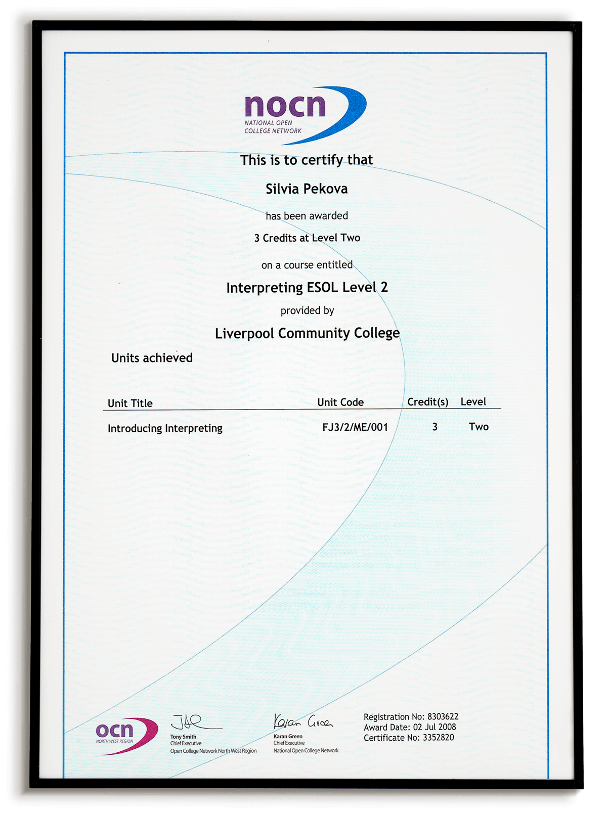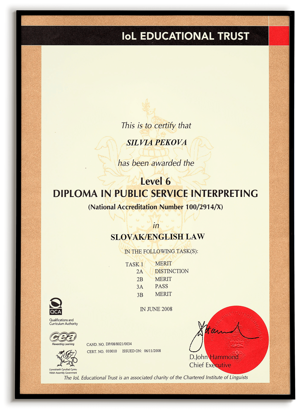 8 rokov životných a pracovných skúseností v Anglicku mi zabezpečilo dokonalú znalosť jazyka a kultúry. Od au pair, cateringu, hotelierstva, rok dobrovoľníctva v komunite až po profesionálne členstvo v komore tlmočníkov National Register of Public Service Interpreters.